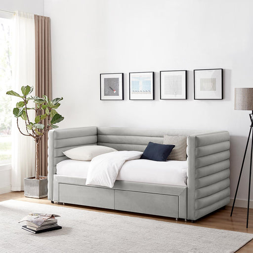 View full detailsUpgrade your bedroom with the Holway Ottoman Bed, a luxurious and practical grey velvet storage bed designed for modern living. Featuring a stateme...